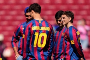 致敬传奇!巴萨球员身穿小罗球衣踩场,庆祝他的46岁生日