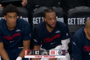 快船迎战开拓者,第三节加兰吃技犯,当时他被阿夫迪亚造犯规,被换下还在抱怨,吃到技术犯规。