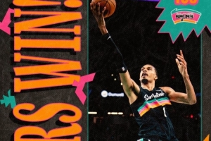 赛季第62胜!马刺赛后晒胜利海报 文班轻舒猿臂上篮入镜