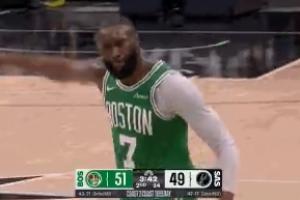 GIF-回放显示杰伦·布朗被卡斯尔推出界裁判没吹犯规